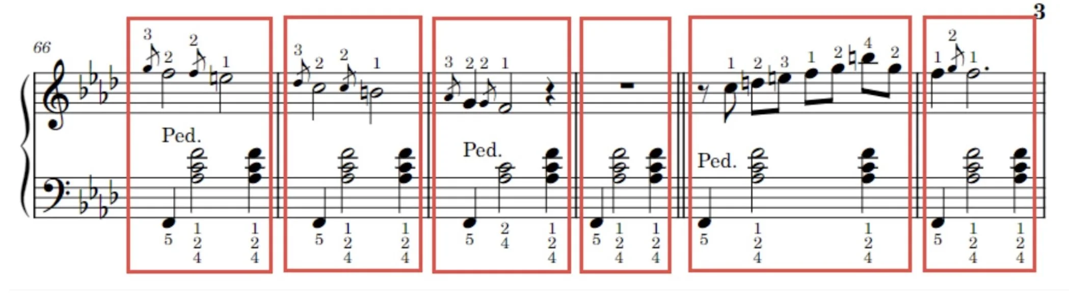 For example, each measure seen here is played for the same amount of time, despite widely varying in width.